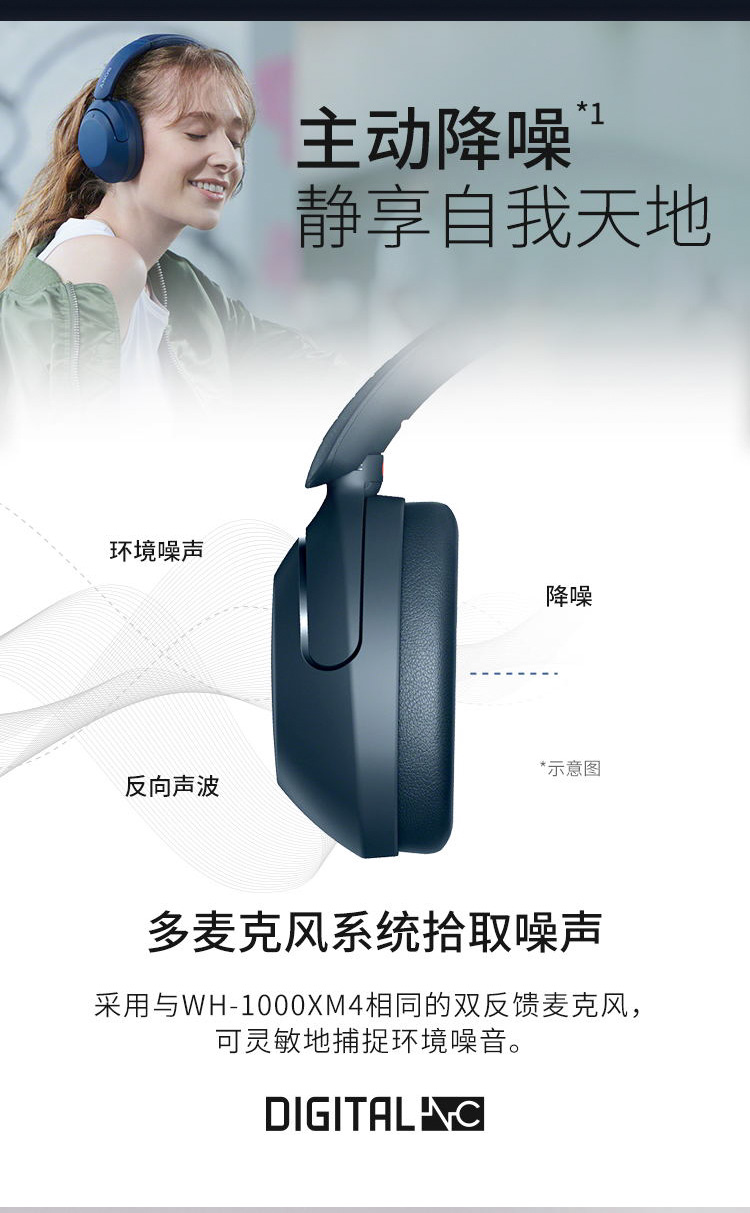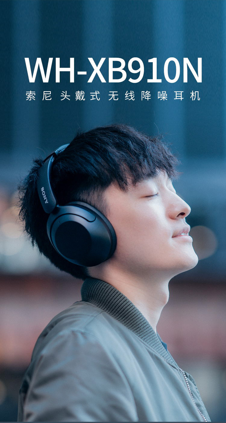 索尼(SONY)WH-XB910N 降噪耳机 无线重低音 头戴式 50小时长久续航 蓝牙5.2 黑色