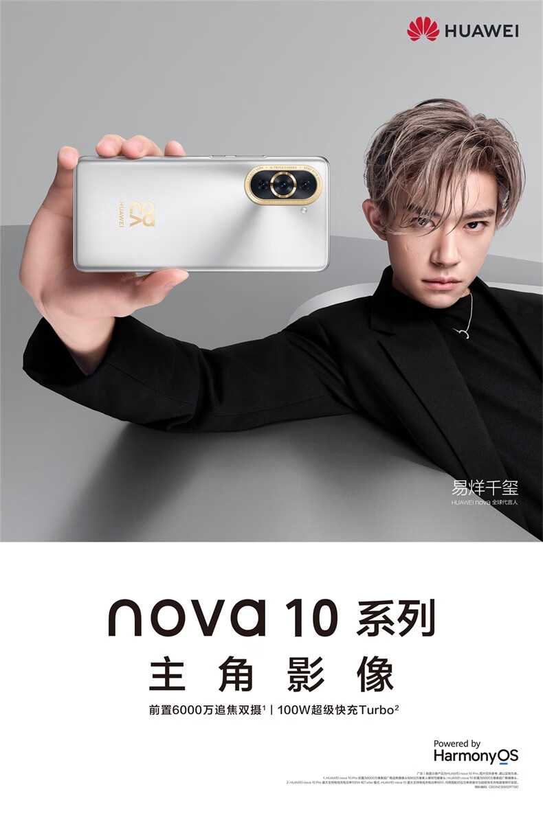 HUAWEI nova 10 【内置66W华为超级快充】 前置6000万超广角镜头 6.88mm轻薄机身 128GB 10号色 华为手机