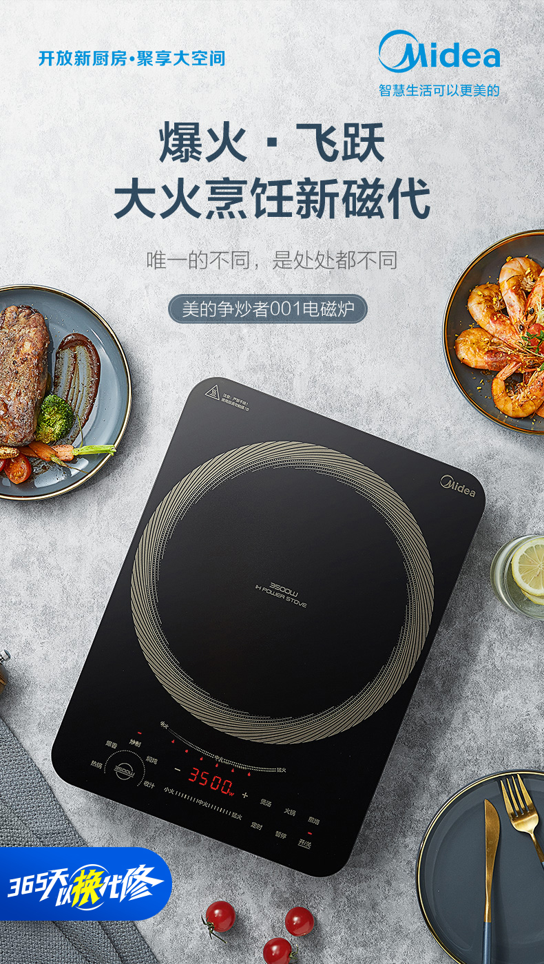 美的(Midea)电磁炉 商用3500W大功率 电磁灶 家用爆炒 匀火加热 智能断电 MC-CL35W7-001
